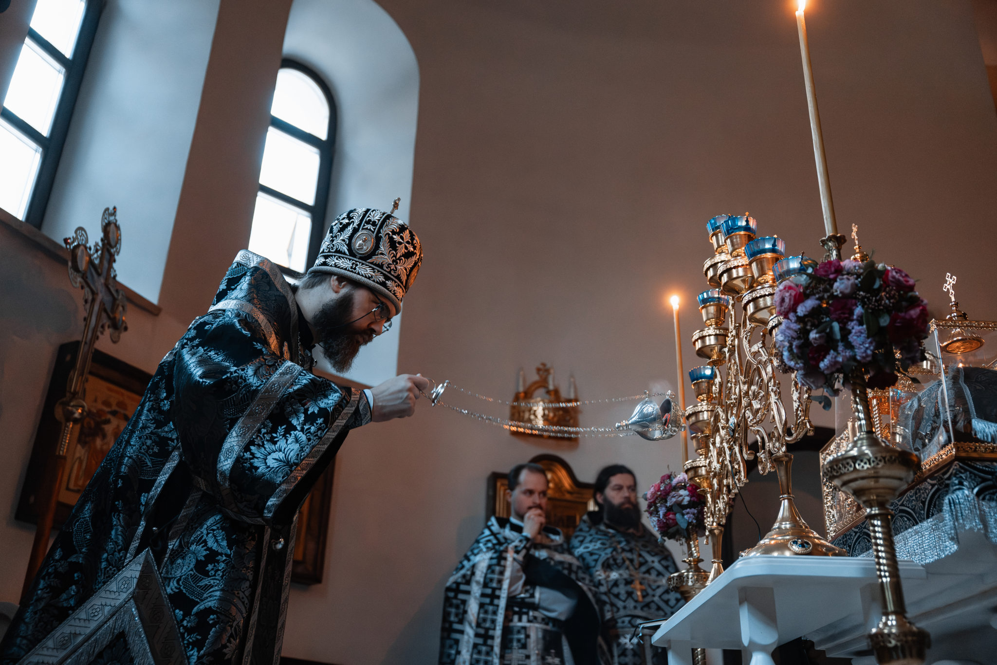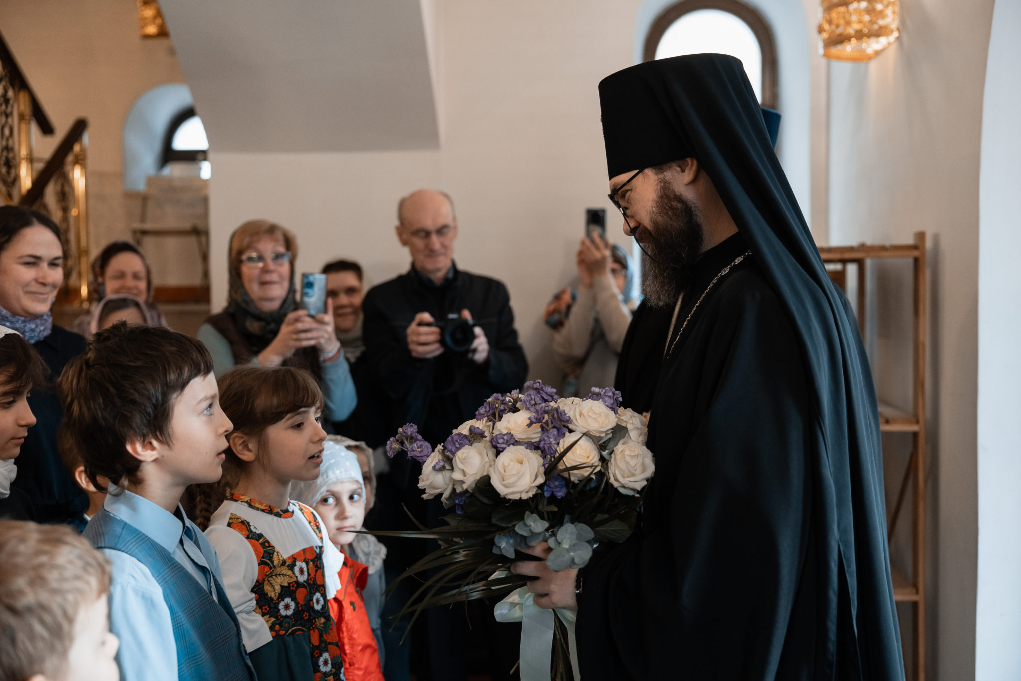 Его Высокопреосвященству сослужили настоятель храма и благочинный священник Андрей Шумкин, секретарь Северо-Западного викариатства священник Максим Павленко, священник Александр Фомушкин, священник Алексий Веретельников, священник Артемий Юдахин, диакон Иоанн Кизюн и диакон Кирилл Яненко.