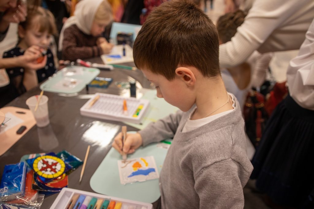 Фестиваль начался с мастер-классов по созданию рождественских цветочных композиций, мини-витражей, бус-кормушек для птиц, сувенирных вязаных зимних шапочек. Также любой желающий мог попробовать плести маскировочные сети и тактические браслеты. В это время молодежный хор «Илиинский светоч» исполнял Рождественские колядки.
