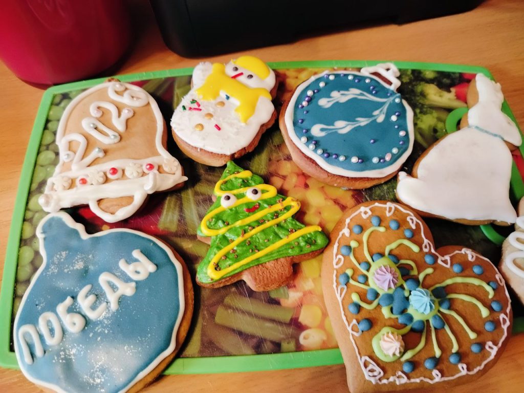Родители заранее напекли пряников и затем все вместе украшали их глазурью, а затем из этого были собраны подарки.