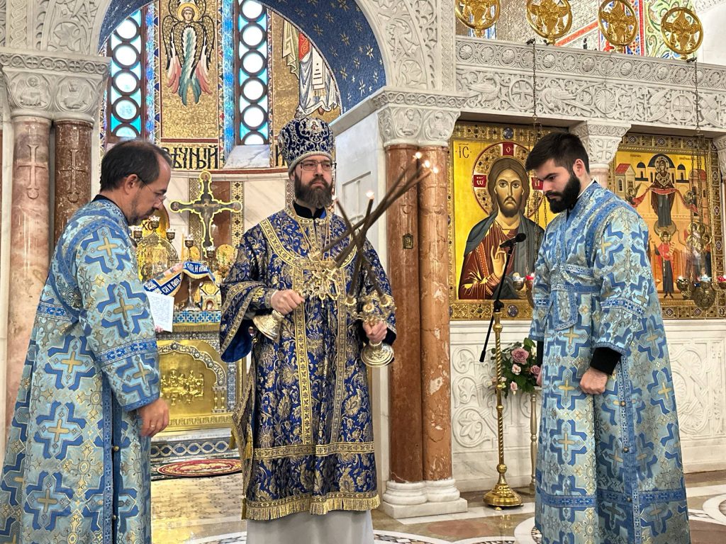Когда мы стоим в этом великолепном храме, смотрим на этот свод, простирающийся над нами, восхищаемся сиянием и красотой этого храма. Мы думаем о тех, кто замыслил и осуществил это, восхищаемся красотой этого покрова, простирающего над нашими головами и прямо сейчас защищающего нас от дождя. Сколь величественнее и более сияющим является покров Божией Матери! Если такая красота предстает нашим глазам в этом мире, сколь велика красота покрова Божией Матери, распростертого над всеми нами, над Отечеством нашим! Сколь велик Созидатель Бог, замысливший и сотворивший наш мир и давший Своей Пречистой Матери простирать покров над всеми нами! Всегда, как только мы ее призываем, она покрывает нас своим покровом. Именно так она сказала еще во Влахернском храме. Глядя на эту красоту будем размышлять о той всевышней красоте, непредставимой для наших глаз, но, надеемся, несмотря на грехи наши, мы однажды это увидим, – о красоте, которую нам даровал Бог и дарует Его Пречистая Матерь».