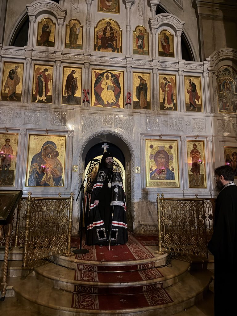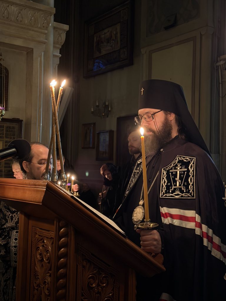 23 февраля 2026 года архиепископ Зеленоградский Савва совершил великое повечерие с чтением Великого покаянного канона прп. Андрея Критского в Алексеевском ставропигиальном женском монастыре в Красном селе.